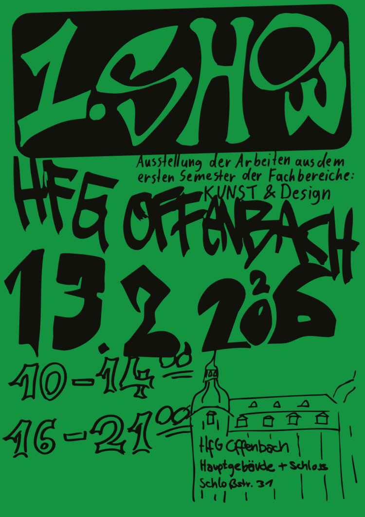Wenn die Hochschule für Gestaltung (HfG) Offenbach am Main zeitgleich zum Tag der offenen Türen und zur Erstsemestershow einlädt, wird der Campus zu einem offenen Denk- und Erfahrungsraum. Werkstätten, Ateliers und Seminarräume beider Fachhbereiche – Kunst und Design – geben Einblicke in laufende Prozesse, während Studienanfänger:innen ihre ersten gestalterischen Arbeiten präsentieren. Zugleich werden Diplom- und Masterarbeiten gezeigt, die verdeutlichen, wie sehr Gestaltung an der HfG als forschende, theoretisch fundierte und gesellschaftlich wirksame Praxis verstanden wird. Die Arbeiten des Lehrgebiet Designtheorie (Tom Bieling) sind in Raum 312 sowie im Foyer der Bibliothek zu sehen.