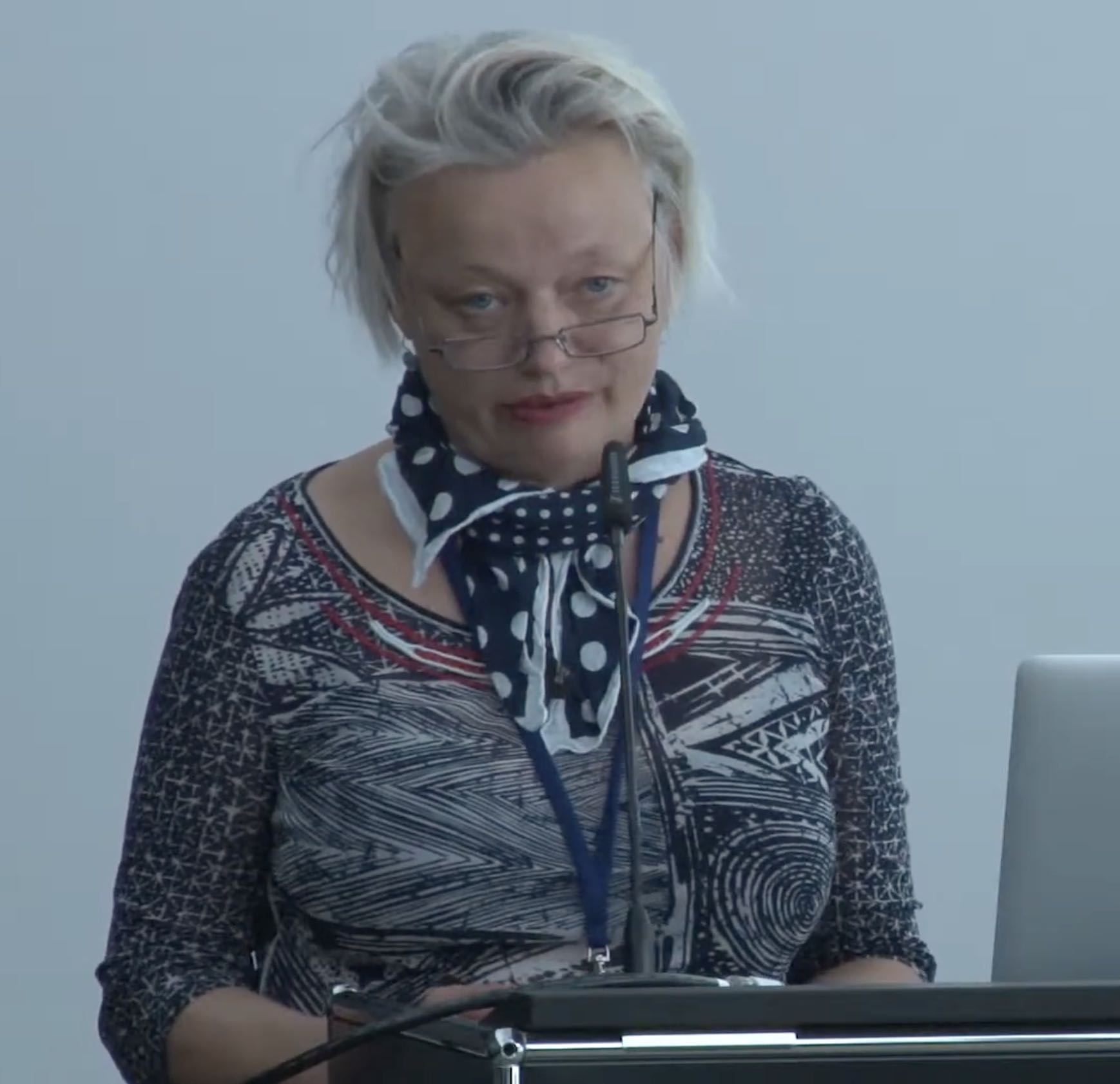 Agnes Meyer-Wilmes Vortrag zu fehlenden und möglichen visuellen Konzepten auf Wortkarten und Arbeitsblättern zur semantischen Qualifikation für Jugendliche und Erwachsene, Konferenz NICHT-WORT – Gestaltung für Sprachbildung im Haus des Buches Frankfurt, 22. Juni 2017 (Bild: Georg Christoph Bertsch